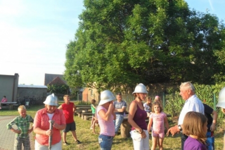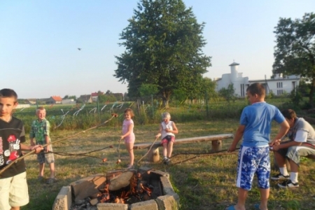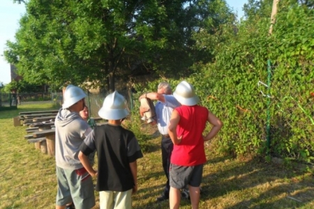Wiele emocji i śmiechu wzbudził konkurs przygotowany i prowadzony przez strażaków –panów: Mielcarka, Niewrzędowskiego i Klepajczuka w którym oprócz dzieci brały udział panie w niewątpliwie twarzowych hełmach. Podano lody, potem dzieci piekły kiełbaski na ognisku nadziewając je na patyki przygotowane przez naszych strażaków.
