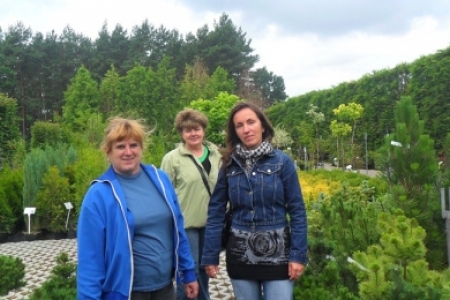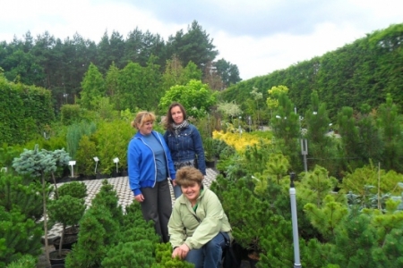Panie z KGW wybierają krzewy aby zagospodarować nasz skwerek.