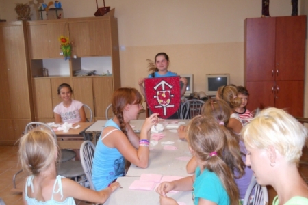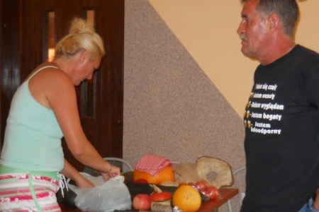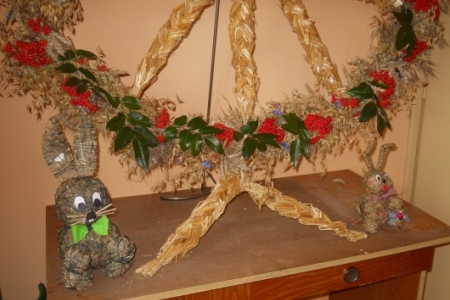 Pakosławsko przygotowuje się do dożynek. Panie Maria Ponichter i Małgorzata Kuriata pracują nad dekoracją dożynkową (wieniec dożynkowy, kosze na warzywa i owoce). Dzieci z kółka plastycznego wykleiły herb Cieszkowa.