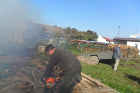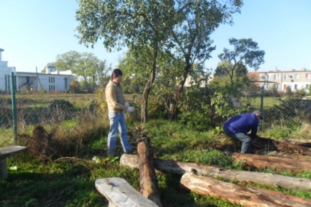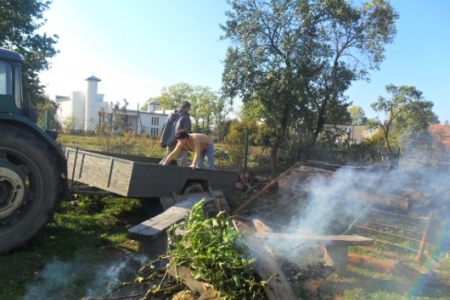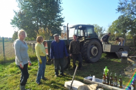 22.10.2011r od godziny 10 przy ładnej, słonecznej pogodzie przystąpiono do prac porządkowych na placu przy remizie w Pakosławsku.