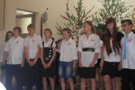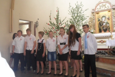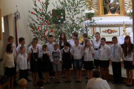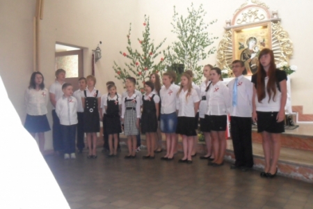 Przed Mszą Świętą, dzieci z Szkoły Podstawowej w Pakosławsku przedstawiły program słowno - wokalny.