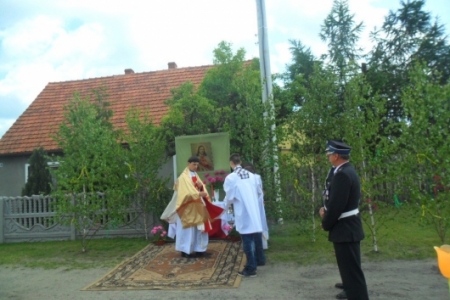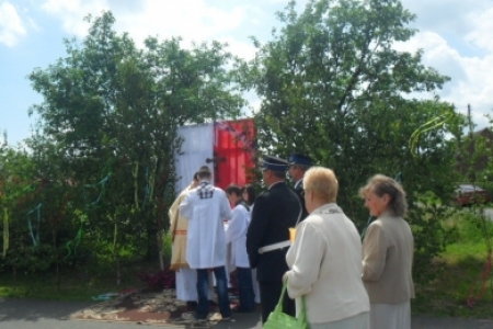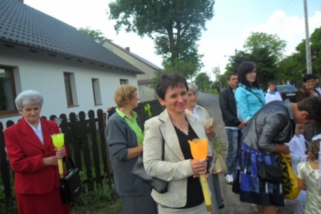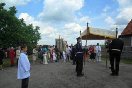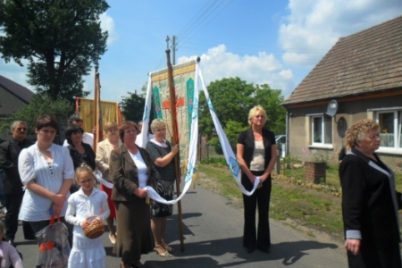 07.06.2012r Piękna, słoneczna pogoda przywitała wiernych którzy ruszyli w procesji do czterech ołtarzy drogami Pakosławska, aby szczególnie wspomnieć w tym dniu Ostatnią Wieczerzę i Przeistoczenie chleba i wina w Ciało i Krew Jezusa Chrystusa.