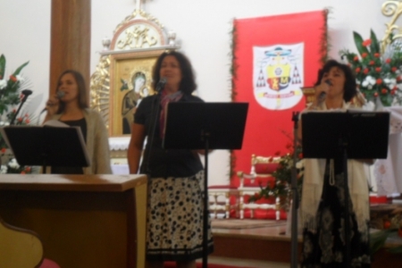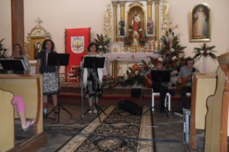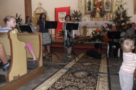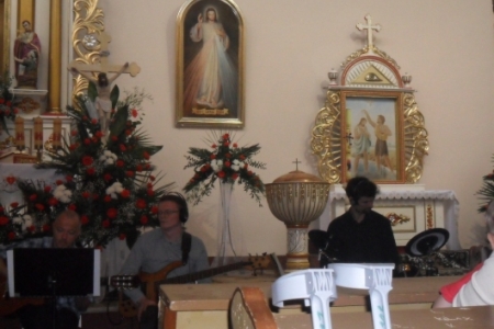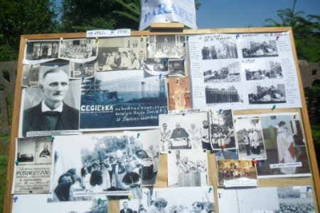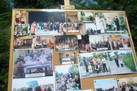Zarówno w sobotę, jak i niedzielę, mogliśmy podziwiać wystawę fotograficzną z historii Parafii. Na stoisku można było zakupić plakietki i foldery związane z wydarzeniem.