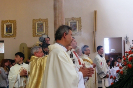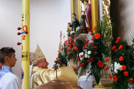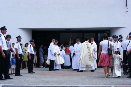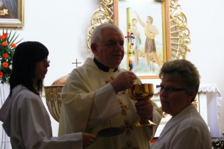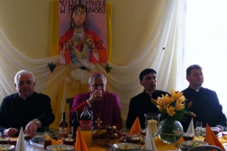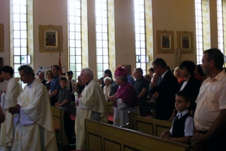 Msza Święta rozpoczęła się o godzinie 13.00. Przewodniczył jej ks. Biskup Edward Janiak. Na Mszy byli obecni księża z dekanatu milickiego, oraz księża, którzy byli proboszczami w Pakosławsku: ks. Ludwik Graf i ks. Janusz Gajewski.