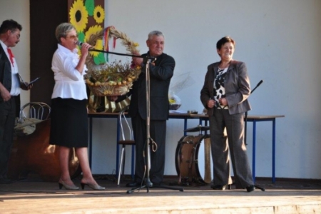 Podczas ceremonii wręczenia wieńców wyróżnionym rolnikom (z Pakosławska: Pani Ponichter i Pan Mielcarek) i zaproszonym gościom wysłuchaliśmy dowcipnych przyśpiewek w wykonaniu: R. Kindrat, U. Wysogląd, I. Kolanowskiej.
