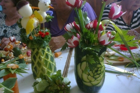 Bardzo ciekawie zajęcia, nauczyły nas różnych tricków dekoracji np w arbuzie, kabaczku czy zwykłej marchewce.