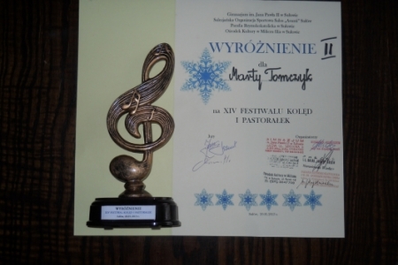 W kategorii zespoły wokalne - III miejsce otrzymał Zespół wokalno – instrumentalny przy Parafii w Pakosławsku – za wykonanie pastorałek „Przekażmy sobie znak pokoju” oraz „Uciekali”.