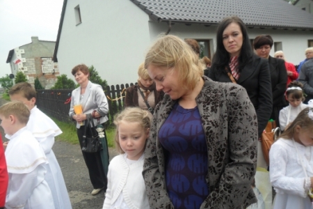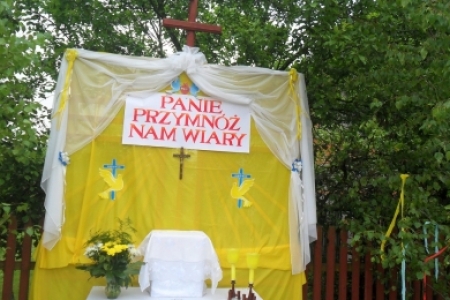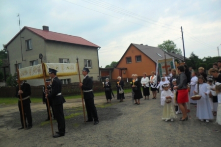 30.05.2013r Wierni ruszyli w procesji do czterech ołtarzy drogami Pakosławska, aby szczególnie wspomnieć w tym dniu Ostatnią Wieczerzę i Przeistoczenie chleba i wina w Ciało i Krew Jezusa Chrystusa.