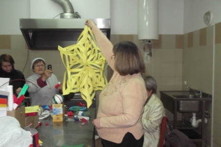 Dnia 15.11.2012r. o godz.17.00 odbyły się kolejne zajęcia z rękodzieła. Na warsztatach kontynuowano rozpoczęte ozdoby choinkowe. Mieszkanki bardzo chętnie zdobiły bombki i robiły papierowe gwiazdy betlejemskie, oraz papierowe aniołki.