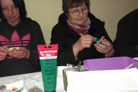 Podczas warsztatów nasze przedstawicielki poznały ciekawą metodę zdobienia przedmiotów, zdobiły tą techniką drewniane ozdoby świąteczne. Poniżej efekty ich starań.