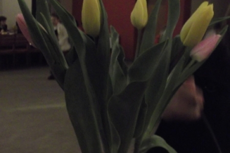 Po występach artystycznych wszystkie Panie otrzymały tulipany i wzniosły toast symboliczną lampką wina.