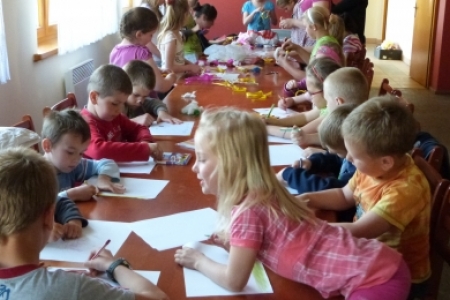 Dzieci wykonały piękne kartki, które same przyozdobiły i włożyły wnie swoje serce. W pracach pomagały nie tylko panie prowadzące ale również członkinie rady sołeckiej wraz z panią sołtys. Panie wykonały kilkanaście kwiatów z krepiny i pokazywały dzieciom jak je w łatwy sposób zrobić.