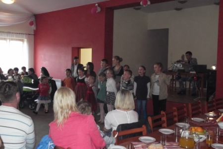 Uroczystość rozpoczęła sołtys Pani Grażyna Szymczyk wraz z Radnym Rafałem Stanieckim. Życzyli oni wszystkim udanej zabawy, a przedewszystkim zdrowia. Po przemówieniu nadeszła pora na występ artystyczny naszego miejscowego zespołu "Pieścienie". Dzieci przygotowały specjalny repertuar w którym znalazły się utwory zarówno dla mam jak i dla dzieci.