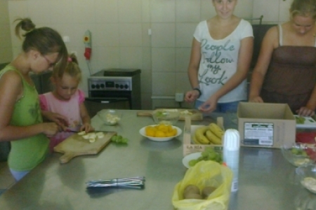 Nasze pociechy chętnie uczestniczą w takich zajęciach i w licznym gronie spotykają się na świetlicy aby rozwijać swoje umiejętności. Tym razem na dzieci czekała zdrowe warsztaty kulinarne, gdyż zadaniem najmłodszych mieszkańców Pierstnicy było przygotowanie sałatek owocowych. Do dyspozycji dzieci było kilka rodzajów owoców i każdy mógł skomponować swoją własną ulubioną sałatkę.