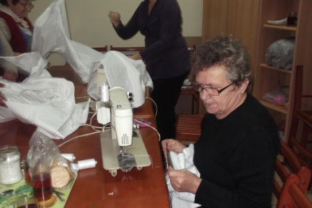 Na zajęcia mieszkanki Pierstnicy przybyły uzbrojone w maszyny do szycia, które wyczarowały piękne białe fartuszki dla każdej członkini KGW. Wstępem do szycia było mierzenie i wykrajanie materiału, oraz burza mózgów na temat wyglądu fartuszków.Po kilkunasto minutowej naradzie panie przystąpiły do ostatecznego szycia. Efekty starań można zobaczyć na poniższych zdjęciach.