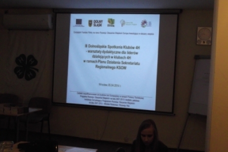 Dnia 5 kwietnia 2014r. w siedzibie Dolnośląskiego Ośrodka Doradztwa Rolniczego we Wrocławiu odbyło się spotkanie dla liderów klubów 4H podczas którego przeprowadzono szkolenie „Moje cele jak spowodować by miały ręce i nogi”, który poprowadziła pani Renata Mikulewicz przedstawiciel Fundacji „Ogrody Twojego Sukcesu” oraz warsztaty które poprowadziła pani Ewa Kokoszka, a była to współczesna twórczość ludowa „Kwiaty wstążką malowane”. Podczas zajęć uczestnicy szkolenia mogli spróbować swoich sił w wykonywaniu kwiatów na płótnie za pomocą przeplatania wstążek.