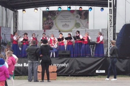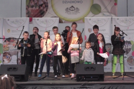 Na scenie podczas występów artystycznych nasze sołectwo reprezentował dziecięcy zespół „Pierścienie”, który swoim repertuarem „rozruszał” widownię.