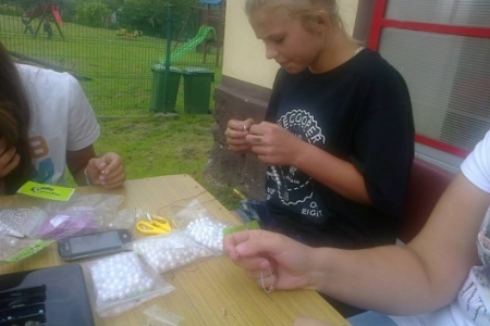 Dnia 14.08.2014 odbyły się kolejne wakacyjne warsztaty dla klubu 4H ,,Truskaweczki,, ,które miały miejsce przy placu zabaw na Pierstnicy. Dzieci wykonywały piękne naszyjniki, bransoletki i kolczyki z koralików, które można zakupić już na najbliższym festynie rodzinnym pod koniec miesiąca...