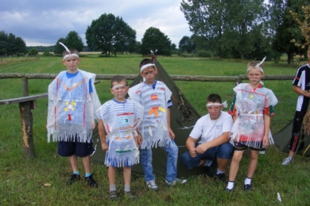 Ponad 30 dzieci ,podzielonych na 6 szczepów, urządzało własne wigwamy. Z wojskowych
