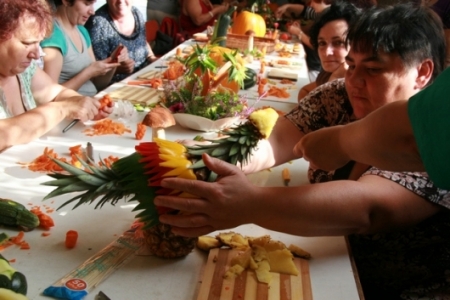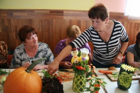 Anna Kreczmer, Beata Woźna oraz Małgosia Banasiak podglądały techniki tworzenia małych dzieł sztuki , które powstawały z warzyw i owoców.Dużo wrażeń, wiele pomysłów i decyzja ,że takie warsztaty musimy zrobić u siebie. Na pewno będzie sporo chętnych.