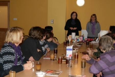Dzień przed Walentynkami grupa Pań , spotkała się z konsultankami ORIFLAME Panią Małgorzatą Domunik i Panią Eweliną Kordacką , które wykonały przybyłym Panią zabieg Satynowe dłonie . Panie przedstawiły również propozycję kosmetyków firmy Oriflame . Przybyłe osoby miały możliwość zakupu kosmetyków.