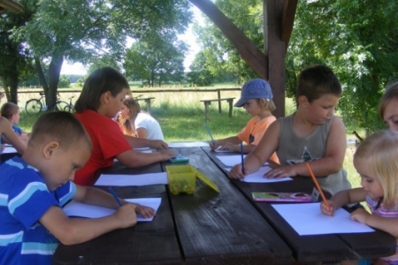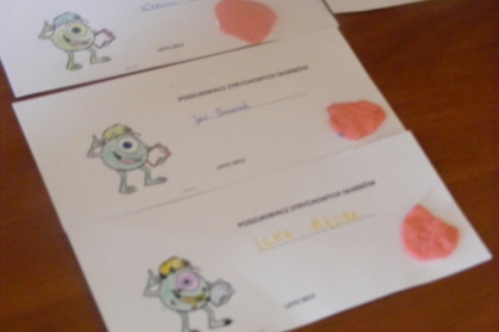 Poza tym dzieci biorą udział w zajęciach plastycznych/dzisiaj powstawały legitymacje "Poszukiwacza strychowych skarbów"/, zajęciach sportowych.Najstarsi pomagali w przygotowaniu toru konnego do malowania.