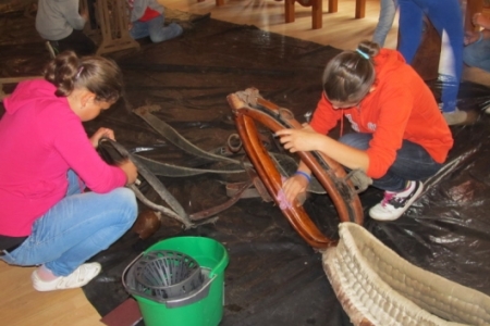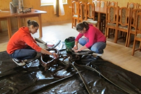 Następnie dzieci zabrały się do pracy.Z dużym zaangażowaniem ścierały rdzę, czyściły elementy skórzane, nakładały pastę itp. Zostało jeszcze sporo pracy.