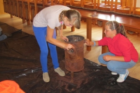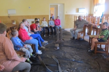 Na spotkanie z uczestnikami wakacyjnych zajęć przyszedł znany nie tylko u nas,świetny specjalista od renowacji starych rzeczy codziennego użytku - p. Zdzisław Okrutnik. Udzielił dzieciom fachowych porad dotyczących czyszczenia i konserwowania przedmiotów z żelaza, metali kolorowych, drewna i szkła.