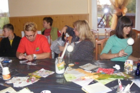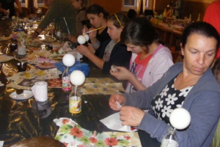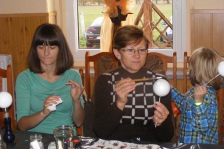W środę, 23 października odbyły się kolejne warsztaty w ramach Akademii Niezwykłych Umiejętności.Tym razem instruktorki z zaprzyjaźnionego Chojnika odkrywały przed nami tajniki nowej techniki-decoupagu.Na pierwszy rzut poszły styropianowe bombki.Każda z uczestniczek malowała,naklejała kolorowe wzory z serwetek aby potem wszystko polakierować,obsypać brokatem i doczepić zapinkę ze wstążki.Miło było podziwać powstające cudeńka.Zachęcone efektami swojej pracy uczestniczki zajęć przystąpiły do zdobienia butelek, słoików i wazoników.Wszystko to można podziwiać w galerii zdjęć.W warsztatach udział wzięło ponad 20 osób.Wiele z pań deklarowało chęć kontynuowania zajęć.W naszych planach jest przygotowanie gadżetów promujących wieś końską.