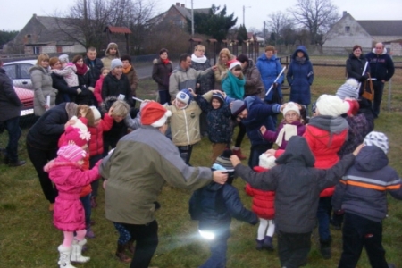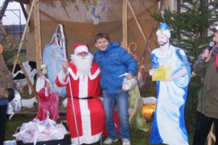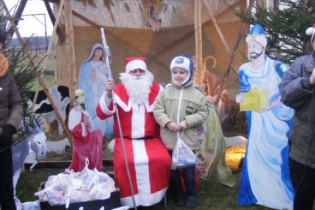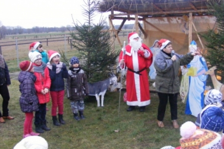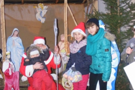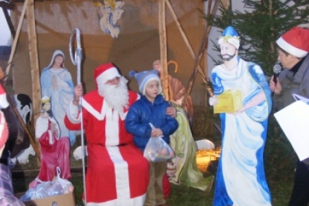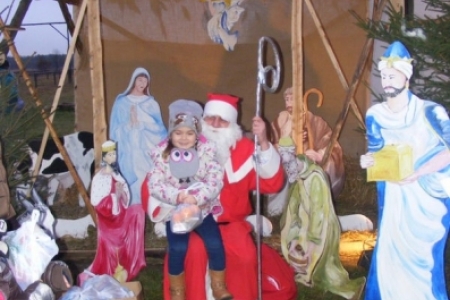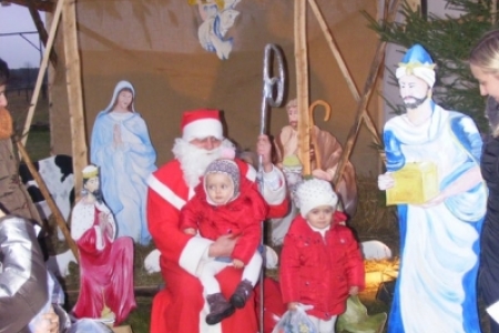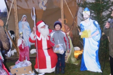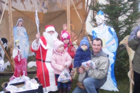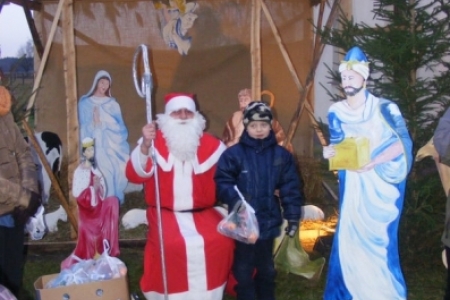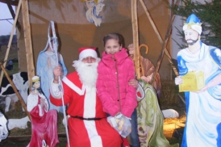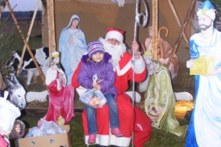Spóźniony, ale przyjechał.I to z rozmachem,strażackim wozem na sygnale.W niedzielne popołudnie ponad 60 maluchów czekało na niego cierpliwie. Spotkanie odbyło się przy szopce bożonarodzeniowej. Oczekując na gościa dzieci bawiły się, śpiewały i tańczyły. Kiedy wreszcie się pojawił zapraszał do siebie i obdarowywał prezentami. Obiecał,że w przyszłym roku zdąży na czas i nie zapomni o prezentach.