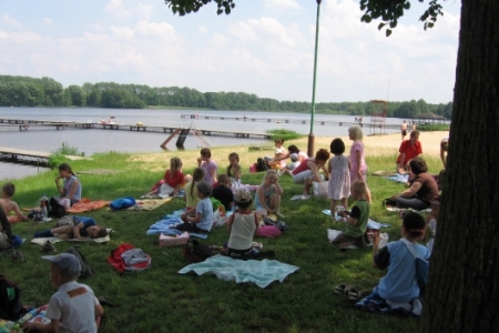 Po przedstawieniu, przejazd autokarem na dworzec PKP, zwiedzenie stacji i ... podróż pociągiem do Antonina. Dla wszystkich dzieci była to pierwsza podróż pociągiem, co oczywiście wzbudziło wiele emocji. W Antoninie, przy pięknej, słonecznej pogodzie kolejna atrakcja – piknik na plaży nad Szperkiem.