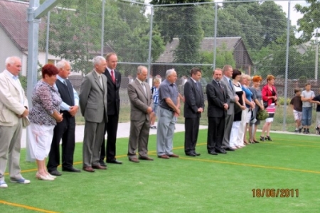 Otwarcia boiska dokonali: wójt Gminy Przygodzice Krzysztof Rasiak, były wójt Gminy Przygodzice Przemysław Kaźmierczak, sołtys Paweł Chudy, w-ce prezes Stowarzyszenia dla Doliny Baryczy Piotr Kryszczak, przewodniczący Rady Gminy Przygodzice Andrzej Baraniak, dyrektor Szkoły Podstawowej w Przygodziczkach Renata Skorupa oraz przewodniczący Samorządu Uczniowskiego Hubert Wojtkowski.