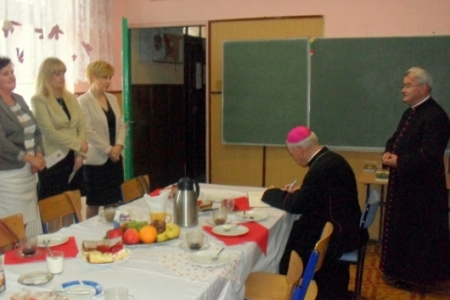 Dnia 25 kwietnia 2013 roku powitaliśmy w naszej szkole Jego Eminencję ks. bp. Seniora Stanisława Napierałę, który odwiedził nas w towarzystwie swojego kapelana Ks. Prałata Macieja Jóźwiaka oraz Proboszcza Księdza Kanonika Edmunda Sieczki.