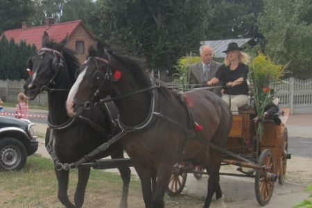 My też dziękowaliśmy podczas Święta Wniebowzięcia Najświętszej Maryi Panny, składając w ofierze chleb oraz wieńce dożynkowe w kościele w Chynowej. Po mszy świętej przejechaliśmy korowodem składającym się z maszyn rolniczych , bryczek oraz zaprzęgów konnych na teren przy Sali Wiejskiej. Gospodarzami święta plonów są zawsze proboszcz parafii ks.kan. Edmund Sieczka oraz sołtysi wsi Bogufałów, Chynowa i Przygodziczki. Obrzęd dożynkowy został przedstawiony przez Zespół Pieśni i Tańca Przygodzice, który zakończył występ wręczając chleb i wieniec dożynkowy starostom Katarzynie Siudzińskiej i Przemysławowi Czekalskiemu. Impreza został uświetniona również występem dzieci ze Szkoły Podstawowej w Przygodziczkach. Gościliśmy również dzieci i młodzież, które przebywały na terenie Gminy Przygodzice w ramach wymiany polsko-francuskiej i polsko-ukraińskiej. Grupa taneczna w Kiwerc zachwyciła nas swoimi występami.