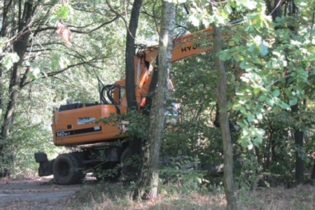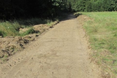 14. Przez cały wrzesień trwają prace przy ścieżce rowerowej, której trasa przebiega przez naszą wieś. Wykonuje te prace firma specjalistyczna, ale ponieważ trasa biegnie wzdłuż boiska to przed meczem mieszkańcy uprzątnęli połamane i wycięte gałęzie i dojazd do boiska.