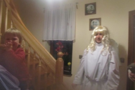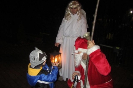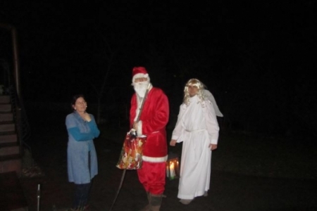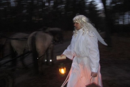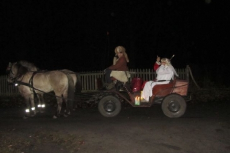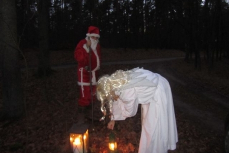 W lesie przed Rudą zawiało, zakręciło liśćmi i z mgły spłynął wóz z końmi, którym świeciły kopyta, zaraz za nim wylądował Anioł no i MIKOŁAJ!!!