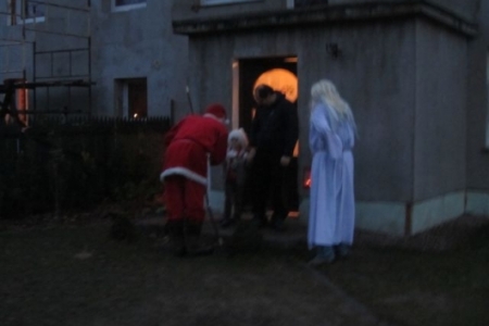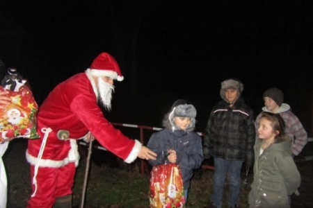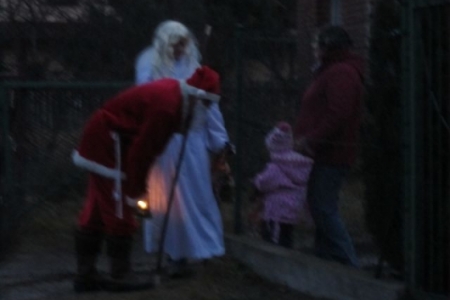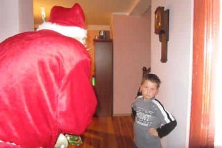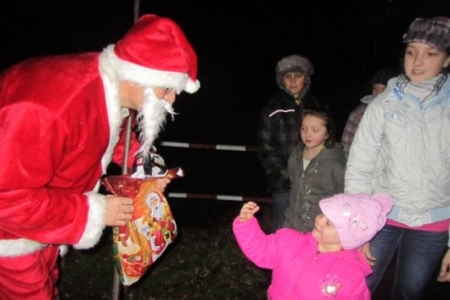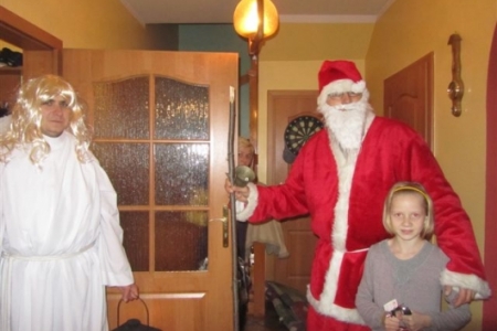 Pani Sołtys już czekała i opowiedziała o grzecznych dzieciach w Dębowie, Stawnie i Rudzie Milickiej, a dzieci już czekały przy oknach, niektóre wyszły przed domy, żeby prędzej zobaczyć Mikołaja. Dzieci były bardzo przejęte, niektóre nieśmiałe, trochę starsze były odważne, całkiem małe bardzo się bały ale wszystkie będą pamiętały tę wizytę. Żadne z dzieci nie potrafiło powiedzieć wierszyka na prośbę Mikołaja – chyba z przejęcia zapomniały, do następnego roku się nauczą bo Mikołaj obiecał, że też przyjedzie.