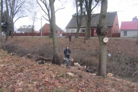 Stare, skłębione chaszcze, spróchniałe drzewa, które z każdym silniejszym wiatrem groziły zawaleniem – wszystko to zostało przez mieszkańców wycięte, uporządkowane, przycięte gałęzie w pozostawionych drzewach. Po raz pierwszy od lat domy wzdłuż drogi będą widoczne od strony boiska, widoczny jest również plac zabaw dla dzieci. Zrobiło się jasno i przestronnie. Dopiero po wycięciu starych drzew widać było jakie stanowiły zagrożenie – często trzymały się tylko na zewnętrznej korze. Ostatni, silny wiatr już nie był dla nas groźny mimo, iż na grobli powalił nawet mniejsze drzewa. Mimo wielkiej sprawności pracujących mieszkańców, do starych dębów przewieszających uschnięte gałęzie nad przystankiem autobusowym, przyjechali strażacy. Z platformy na dźwigu, usunięte zostały niebezpieczne konary. Przy silnych podmuchach wiatru nie musimy już się obawiać spadających gałęzi i łamiących się drzew.