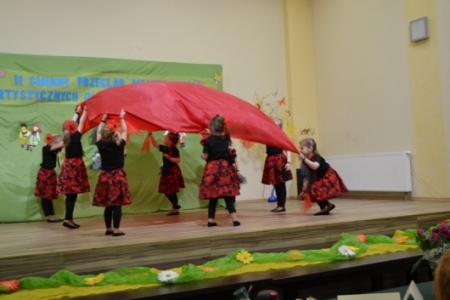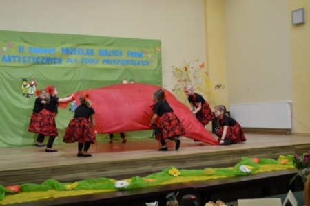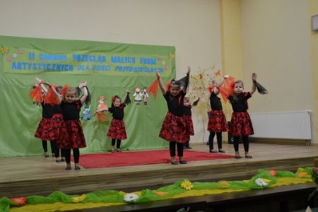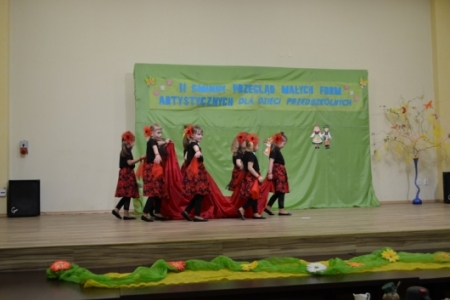 Konkurs pod patronatem Wójta Gminy Sośnie oceniało czteroosobowe jury. Dzieciom bacznie przyglądali się licznie zgromadzeni rodzice i zaproszeni goście. Do rywalizacji stanęło 8 zespołów tanecznych reprezentujących przedszkola z terenu gminy Sośnie. Swoje umiejętności taneczne prezentowały dwie grupy z Przedszkola Samorządowego w Sośniach i Oddziału Przedszkolnego oraz przedszkolaki z Granowca, Cieszyna, Pawłowa, Chojnika i oddziału przedszkolnego w Bogdaju. Każda grupa mogła zaprezentować tylko jeden układ teneczny w czasie od 3 do 5 minut. Wszyscy uczestnicy wykazali się dużymi umiejętnościami tanecznymi, wyczuciem rytmu, wrażliwością estetyczną, popularyzując różne formy ruchowo - taneczne. Były tańce współczesne, do muzyki klasycznej oraz ludowej. Nasze przedszkolaki: Zuzia Dolata, Karolina Dubiel, Wiktoria Pawłowska, Karolina Woźniak, Oliwia Banaś, Lenka i Narinka Wasiela, Jakub Siof oraz najmłodsza - Weronika Czerwieniec (3 lata) zaprezentowali układ taneczny do muzyki F. Schuberta - ,,Serenada", zajmując III miejsce w konkursie. Nagrodę dla przedszkola w postaci zabawek i gier dydaktycznych oraz dyplom, odebrała wychowawczyni B. Paczkowska. Każde dziecko otrzymało również pamiątkowy dyplomik i słodki poczęstunek. Ten dzień na długo pozostanie w pamięci. Był dniem pełnym wrażeń, fantazji, dobrej zabawy tanecznej, rozwijajał przy tym kreatywność małych artystów. Wszyscy świetnie się bawili.