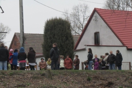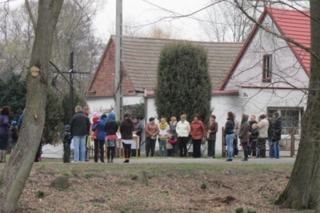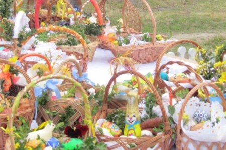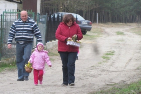 Mieszkańcy Rudy Milickiej rano zebrali się pod krzyżem z pięknie przystrojonymi koszykami. Przybyli całymi rodzinami. Jak zwykle najbardziej przejęte były dzieci, których jest sporo w naszej małej miejscowości – niektóre dzieci dopiero pierwszy raz mogły przyjść w Wielką Sobotę. Ksiądz poświęcił pokarmy i wodę, wszyscy złożyli sobie świąteczne życzenia.