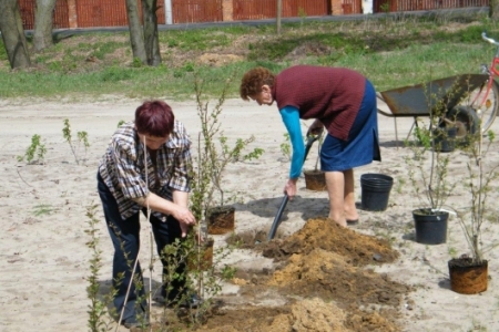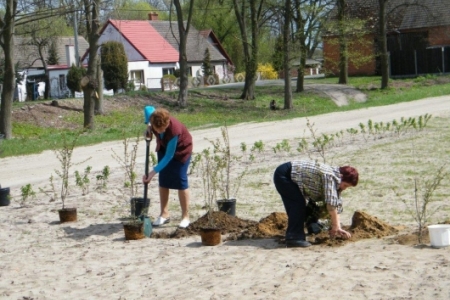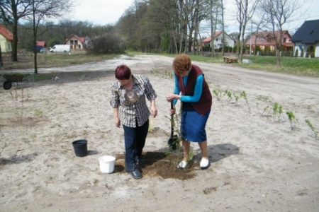 Na festynie w Potaszni dostaliśmy w prezencie drzewko jabłoni ze Szkółki Drzew i Krzewów w Świebodowie. Jabłonie są nie tylko ładnymi drzewami, które często uprawiane są jako rośliny ozdobne, ale też jabłka są najbardziej popularnymi owocami nie tylko ze względu na ich bardzo dobry smak, ale też dużą zawartość witamin i soli mineralnych. Dlatego też postanowiliśmy nasze drzewko posadzić przy placu zabaw dla dzieci. Będzie nie tylko ładnie wyglądać, ale też dzieci będą mogły korzystać z owoców zrywanych prosto z drzewa. Przy okazji jeszcze kilka dodatkowych drzewek i krzewów zostało posadzonych przy alejce i trawniku. Panie Irena Pyziołek i Krystyna Jakubowska jak zobaczyły panią Sołtys z taczką wypełnioną krzewami, natychmiast (jak zwykle) złapały za łopaty i przybiegły pomagać w sadzeniu. Trudno już teraz zliczyć ile mamy nowych roślin a jeszcze posadzimy około 1000 róż, dębów, lip z naszego nowego programu. Jeśli nasza wieś nie jest jeszcze najpiękniejsza, to jak te wszystkie rośliny podrosną, to jesteśmy skłonni się założyć, że będzie najpiękniejszą wsią w Dolinie Baryczy.