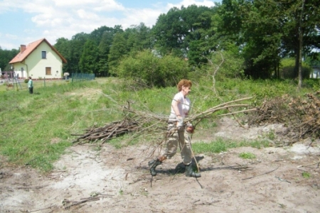 Po wywiezieniu sterty gałęzi przez sołtysa Duchowa pana Jerzego Nawrockiego stały zespół pracowitych pań z Rudy Milickiej jak zwykle przy pracy. Natomiast sześciu panów z Rudy z pomocą sąsiadów z Grabownicy, 29 maja rozpoczęli prace przy montażu siatki ogrodzeniowej wzdłuż boiska od strony rowu z wodą – będzie to zabezpieczenie przed wpadaniem piłki do wody. Słupki zespawał pan Stanisławski. Prace wymagały nie tylko transportu ale i sporo wysiłku z użyciem sprzętu. Panowie poradzili sobie bardzo dobrze. Jeśli potrzebna jest mobilizacja to nie brak chętnych do prac a cieszy nas również to, że mieszkańcy wsi sąsiednich chętni są do pomocy – nic bardziej nie integruje jak wspólna praca.