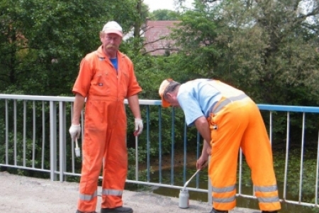 Balustrady mostu przylegającego do drewnianego jazu zostały na nowo pomalowane. Faktycznie po wielu latach most wyglądał jak z innej – uboższej – epoki.