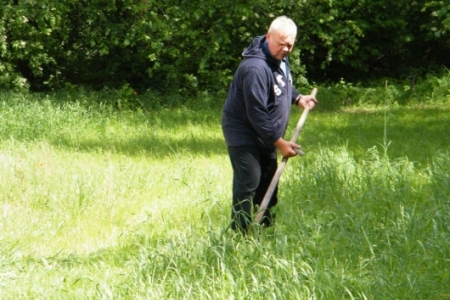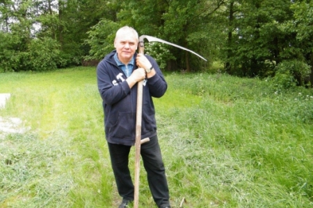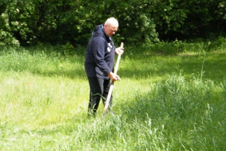 W Rudzie Milickiej tę zanikającą sztukę ostatnio mogliśmy podpatrzeć w wykonaniu pana Henryka Kołodziejczyka. Może poprosimy o lekcje koszenia? Myślę, że chętni znaleźliby się bo jest to sztuka ginąca. Pani Regina Kołodziejczyk natomiast dba o nasze młode roślinki – plewi, zbiera skoszoną trawę. Dzięki Państwu Kołodziejczykom nasz teren rekreacyjny jest zadbany, a medal za aktywność należy się wszystkim mieszkańcom starego młyna.