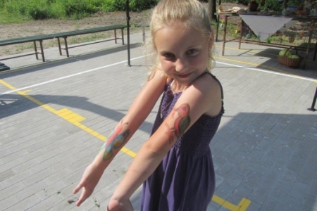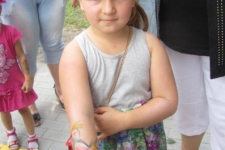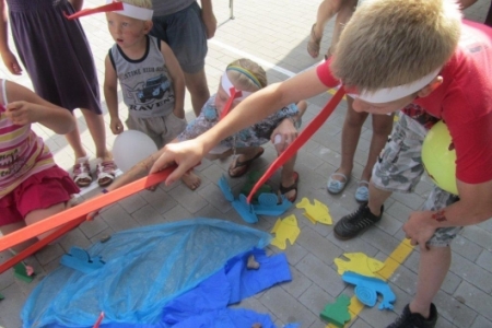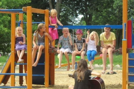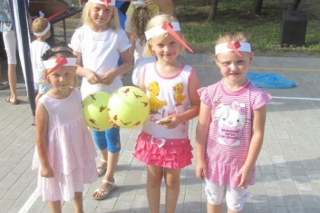 Nasze dzieci były radosne, chętnie uczestniczyły we wszystkich zabawach, śpiewały (następny raz przygotujemy nagłośnienie), malowały, bawiły się piłkami malowanymi w ptaki, które dostały w prezencie, łowiły ryby i chciały mieć pomalowane rączki i buzie a ich życzenia spełniała pani Joanna. Pani Zosia z Fundacji przygotowała wiele gier, zabaw i nie było dziecka, które nie chciałoby w tych zabawach uczestniczyć. W niebo poleciały balony i tak został otwarty dla dzieci plac zabaw w Rudzie Milickiej