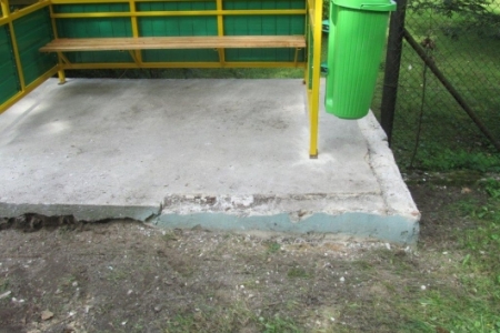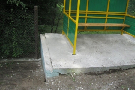 Bylibyśmy zadowoleni z nowej konstrukcji, gdyby nie to, że wiata jest węższa od poprzedniej i w związku z tym zrobiła się przeszło półmetrowa przerwa pomiędzy odrodzeniem a ścianami wiaty, ponieważ wszystko razem jest umieszczone na dość wysokim cokole, za którym jest znaczny spadek – miejsce staje się niebezpieczne dla dzieci, które jak sami wiemy lubią sprawdzić czy da się skoczyć. Oczywiście, że sami postaramy się to zabezpieczyć, ale na moją uwagę po zakończonej pracy panowie montujący powiedzieli, że nie mają tego w zakresie prac co sprawiało wrażenie ograniczenia w przydziale rozsądku. Prosiłam również o wyrównanie cokołu ale okazało się, że to też nie było „w przydziale” i tak beton został na krawędziach poszarpany. I to jest ta łyżka dziegciu i dowód na to, że ładną rzecz można zepsuć już na samym początku. Wiatę będziemy przenosić po wyrównaniu zasypanego rowu, gdyż miejsce przy głównej ulicy przy domach jest bezpieczniejsze dla dzieci i wtedy zadbamy o wszystkie szczegóły.