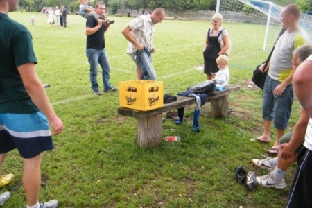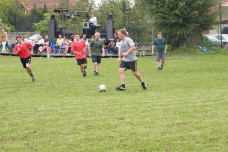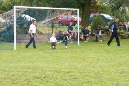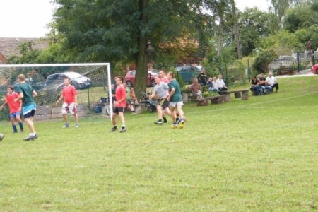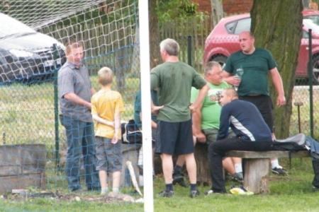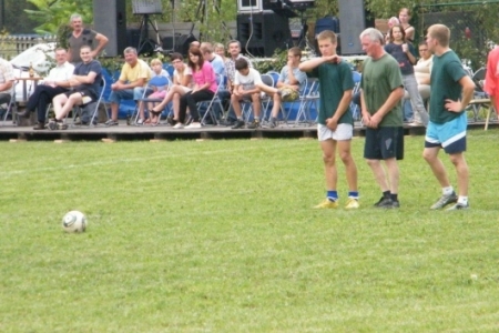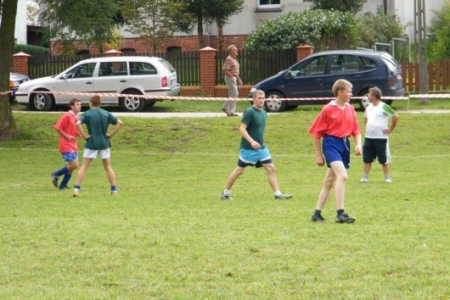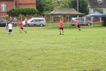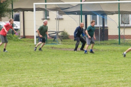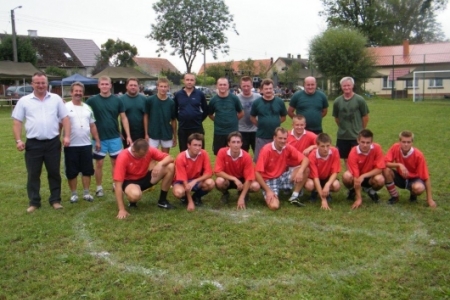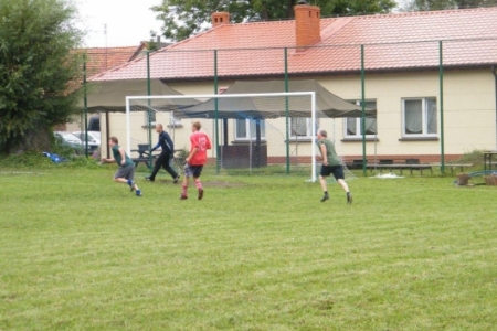 Mieszkańcy Rudy Milickiej zostali zaproszeni nie tylko na same uroczystości ale też do uczestnictwa w meczu piłki nożnej. Duchowo to nasi sąsiedzi „przez pole” – bywają na niedzielnych meczach rozgrywanych na naszym boisku i dlatego z przyjemnością nasi panowie przyjęli zaproszenie na wspólny mecz. Drużyna Duchowa była w koszulkach czerwonych a nasza w zielonych. Naszym zawodnikom kibicowały rodziny i znajomi no i sołtys pani Krystyna Patalas. Sołtys Duchowa pan Jerzy Nowacki dodatkowo pełnił funkcję sędziego i nikt nie miał powodu narzekać. No a WYNIK?! Sprawiedliwy remis 1 do 1. Ciekawe czy na meczu rewanżowym w Rudzie Milickiej sędziować będzie pani Sołtys?