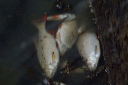 Konsekwencją tego jest odsłonięcie dna rzeki przed miejscem spadku w sposób do tej pory niespotykany. Z bagna, które utworzyło się przed jazem wydobywa się fetor zatruwający powietrze w Rudzie Milickiej. W stawidle przed mostem leżą od kilku dni śnięte ryby (co widać na załączonym zdjęciu). Moje wątpliwości wiążą się z tym czy odpady biologiczne – gnijące zwłoki fauny wodnej i lądowej - nie stanowią zagrożenia skażeniem wód i bakteriologicznego skażenia środowiska. Biorąc pod uwagę ukształtowanie terenu – wprawdzie nie bezpośrednio, ale kolejno poprzez kilka cieków- woda (a właściwie ścieki) może się również przedostawać do napełnianego zbiornika w Miliczu co stanowiłoby dodatkowe zagrożenie dla mieszkańców miasta. Wiemy, gdzie kończy bieg woda z Prądni natomiast nie jesteśmy w stanie przewidzieć, gdzie kończą bieg bakterie zawarte w tej wodzie. Czy nie lepiej jest poczekać z napełnianiem zalewu do wyższego stanu wód w rzekach i nie ryzykować zatrucia środowiska? Kto i jak szybko może rozwiązać ten śmierdzący problem?