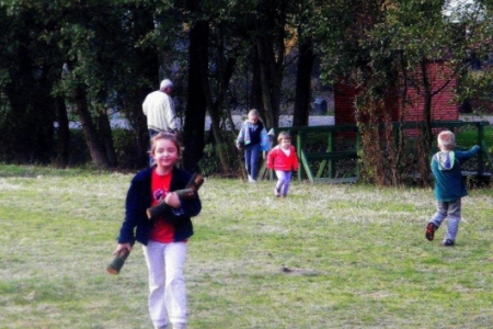 Coraz więcej osób się schodziło na wspólne spotkanie a dzieci korzystały ze stojaków na rowery traktując je jako konie – projektant pewnie nie przewidział takiej funkcji, choć jest ona najbardziej popularna. Nigdy nie widzieliśmy roweru opartego o stojak a ujeżdżające na stojakach dzieci mają za każdym razem frajdę – może pomyślimy o siodłach? Inauguracja ogniska była udana.