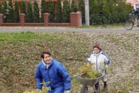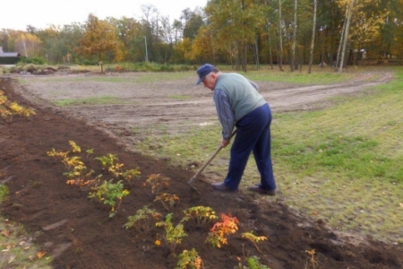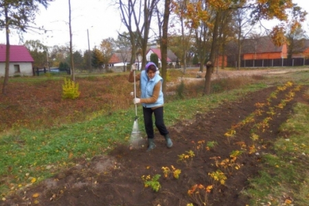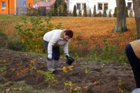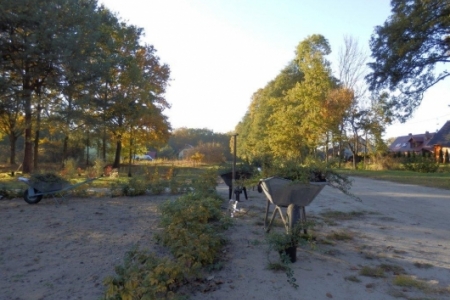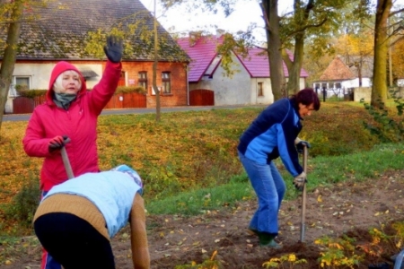 Mieliśmy zaplanowane sadzenie roślin w ramach programu „Krzewy dla ptaków i urody wsi” do 27 października, ale ponieważ przychodziło dużo osób to udało się zakończyć sadzenie już w piątek 26 października – i całe szczęście – był to ostatni dzień pięknej jesieni.